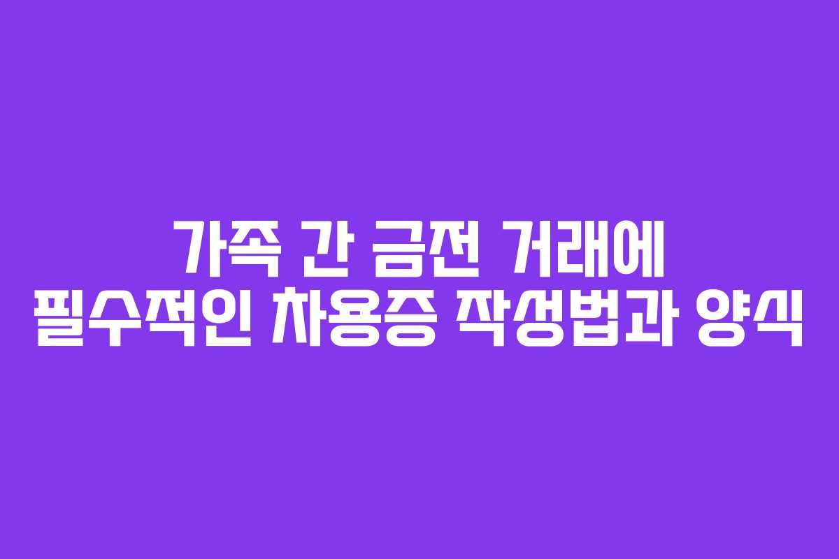 가족 간에 금전 거래를 할 때, 차용증을 작성하는 것은 매우 중요합니다. 특히 증여로 간주되지 않도록 하기 위해서는 명확한 증빙이 필요합니다. 따라서 오늘은 차용증을 작성하는 방법과 양식에 대해 자세히 알아보겠습니다.