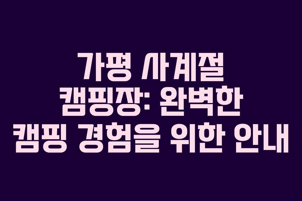 경기도 가평군에 위치한 가평 사계절 캠핑장은 깨끗한 공기와 맑은 물이 흐르는 자연 속에서 다양한 액티비티를 즐길 수 있는 소규모 캠핑장입니다. 이번 글에서는 이 캠핑장의 예약, 가격, 위치, 운영 형태 등 필수 정보를 자세히 살펴보겠습니다.