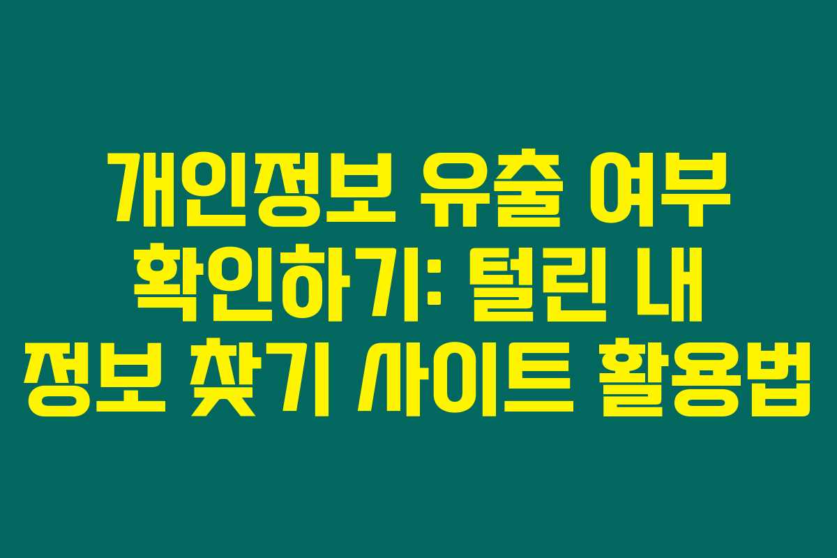 이번에 소개한 털린 내 정보 찾기 서비스를 통해 개인정보 유출 여부를 쉽게 확인하세요. 지금 바로 시작해 보시길 바랍니다!