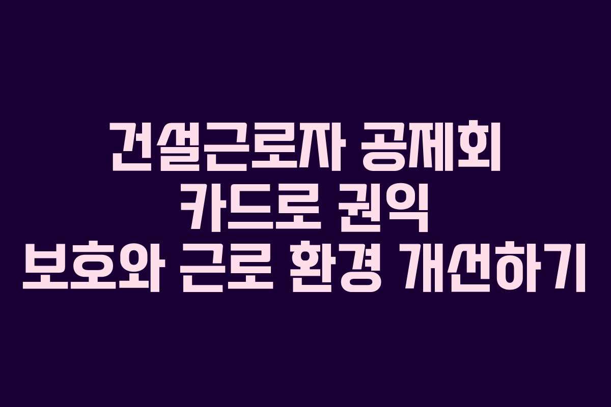 건설근로자 공제회 카드는 건설 현장에서 일하는 근로자들의 권익을 지키고, 다양한 혜택을 통해 근로 환경을 개선하는 중요한 수단입니다. 2024년부터는 전자카드의 사용이 확대되며, 더 많은 현장에서 이 카드를 활용할 수 있게 되어 근로자들에게 더욱 유익한 환경을 제공할 예정입니다. 이번 포스팅에서는 건설근로자 공제회 카드의 발급 절차, 사용 방법, 혜택 등에 대해 자세히 알아보겠습니다.