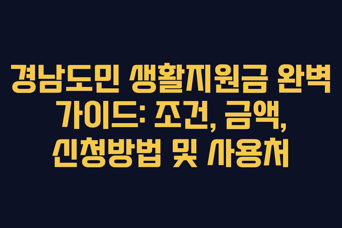경남도민 생활지원금은 2026년 현재 도민의 생활 안정과 경제적 지원을 위해 마련된 중요한 정책입니다. 이 글에서는 지원금의 조건, 금액, 신청방법, 사용처를 체계적으로 정리하여 한 번에 이해할 수 있도록 구성했습니다.