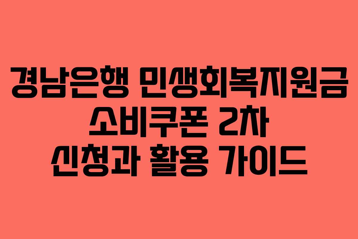경남은행 민생회복지원금 소비쿠폰 2차 신청과 활용 가이드
