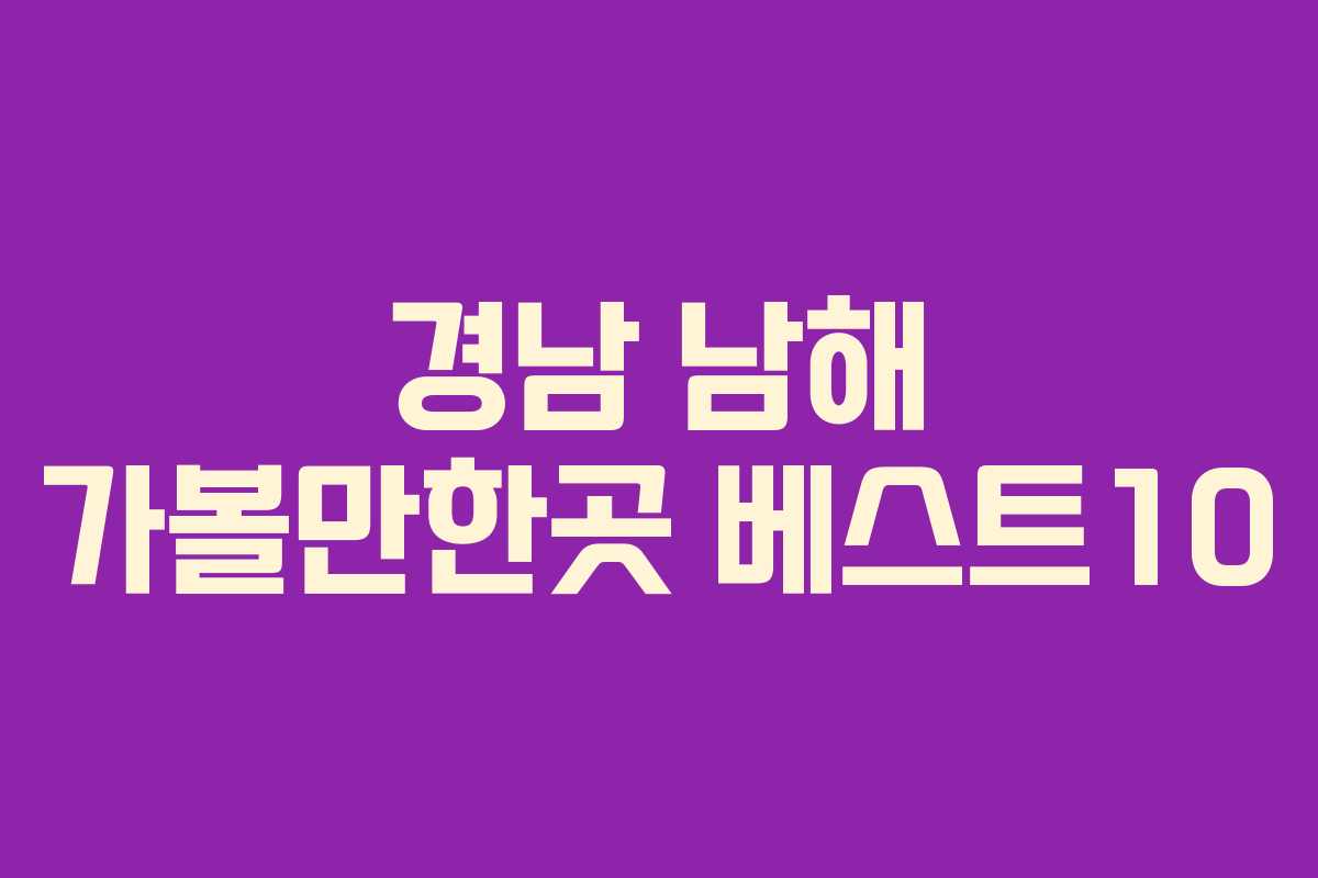 경상남도 남해는 아름다운 해변과 자연 경관, 그리고 다양한 관광 명소로 유명한 여행지입니다. 이번 글에서는 남해에서 꼭 방문해야 할 10곳을 추천드립니다.