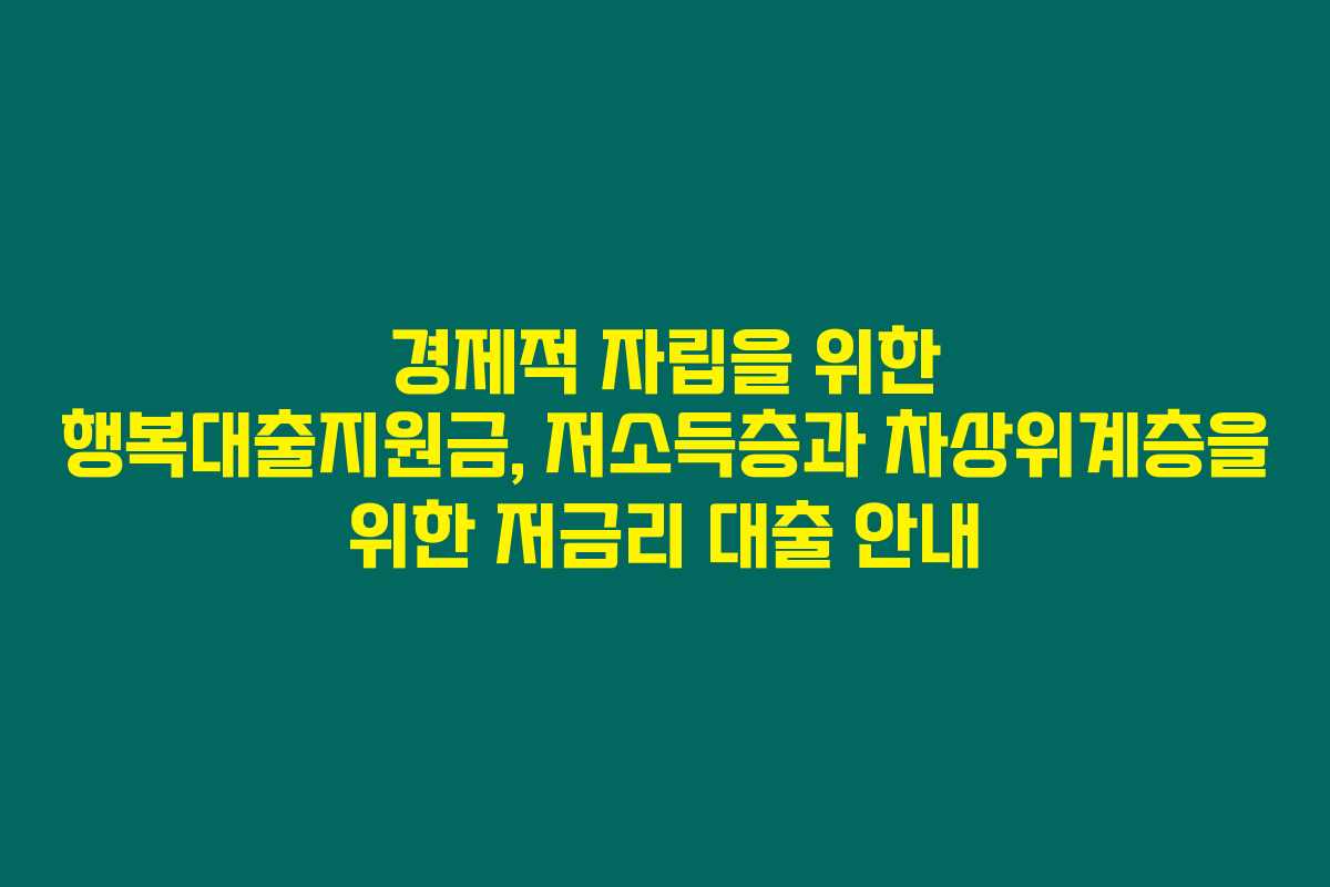 제가 직접 알아본 바로는, 행복대출지원금은 저소득층과 차상위계층에게 큰 도움이 될 수 있는 저금리 대출 프로그램입니다. 높은 이자와 까다로운 절차 때문에 대출을 주저했던 분들에게는 정말 유용한 기회가 될 것입니다. 아래를 읽어보시면, 이 프로그램의 신청 방법과 상환 조건 등을 상세히 설명드리겠습니다.