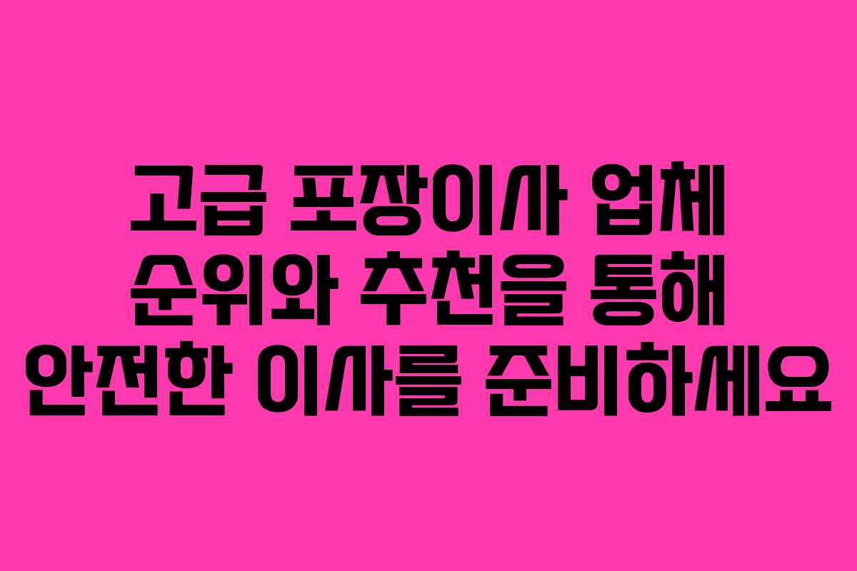 이사라는 일은 누구에게나 큰 부담이 될 수 있습니다. 특히 귀중한 물품이나 많은 짐을 옮길 때는 믿을 수 있는 포장이사 업체를 선택하는 것이 매우 중요합니다. 오늘은 고급 포장이사 업체에 대한 순위와 추천 목록을 통해 안전하고 효율적인 이사를 위한 정보를 제공하겠습니다.