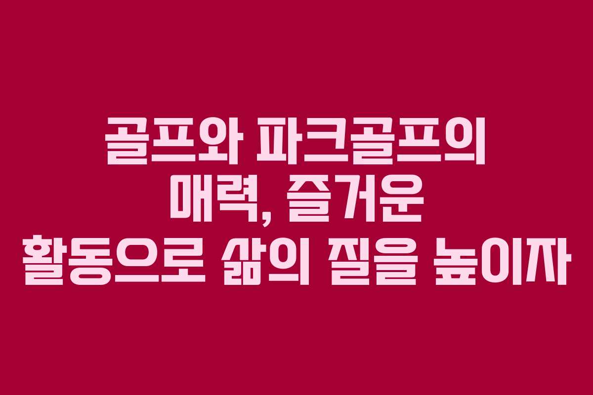 많은 사람들이 골프를 통해 즐거움을 얻고 있으며, 파크골프는 더욱 다양한 사람들에게 친숙해지고 있다. 이 글에서는 골프와 파크골프의 매력을 살펴보고, 이들이 어떻게 삶의 질을 높일 수 있는지에 대해 이야기해보고자 한다.