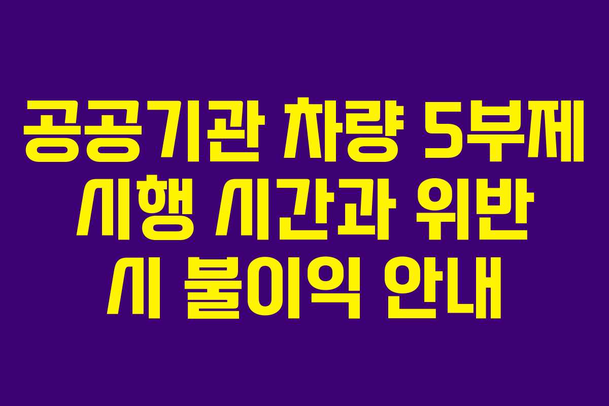 공공기관 차량 5부제는 특정 요일에 차량의 출입을 제한하는 제도입니다. 서울시의 경우, 요일별 차량 끝번호에 따라 출입이 제한되며, 그 기준은 다음과 같습니다. 월요일은 끝번호 1과 6, 화요일은 2와 7, 수요일은 3과 8, 목요일은 4와 9, 금요일은 5와 0으로 설정되어 있습니다. 이 제도는 오전 7시부터 오후 8시까지 적용됩니다.