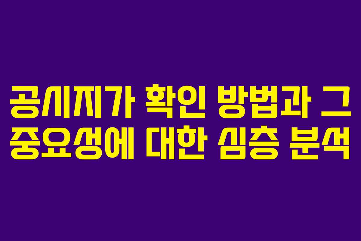 부동산 시장에서 공시지가는 매우 중요한 역할을 하고 있으며, 이는 세금 계산, 인허가 비용 산정 등 다양한 분야에서 기준으로 활용됩니다. 특히 국토교통부에서 매년 1월과 6월에 발표하는 개별공시지가는 많은 사람들에게 필수적인 정보로 자리 잡고 있습니다. 이러한 공시지가를 확인하는 방법에 대해 깊이 있게 알아보겠습니다.
