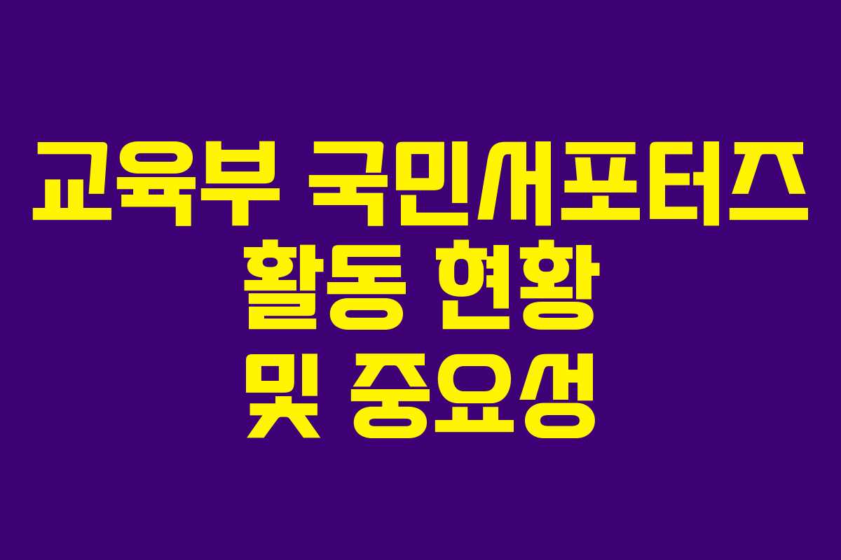 국민서포터즈의 활동은 학생들에게 다양한 경험을 제공하고, 교육 정책에 직접적으로 참여할 수 있는 기회를 제공합니다. 2026년 현재, 국민서포터즈는 더욱 발전된 방향으로 나아가고 있으며, 이는 교육부의 정책에도 긍정적인 영향을 미치고 있습니다. 학생들이 적극적으로 참여하여 자신의 목소리를 낼 수 있도록 다양한 기회를 제공하는 것이 중요합니다.