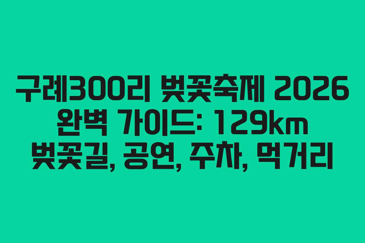 구례300리 벚꽃축제 2026 완벽 가이드: 129km 벚꽃길, 공연, 주차, 먹거리