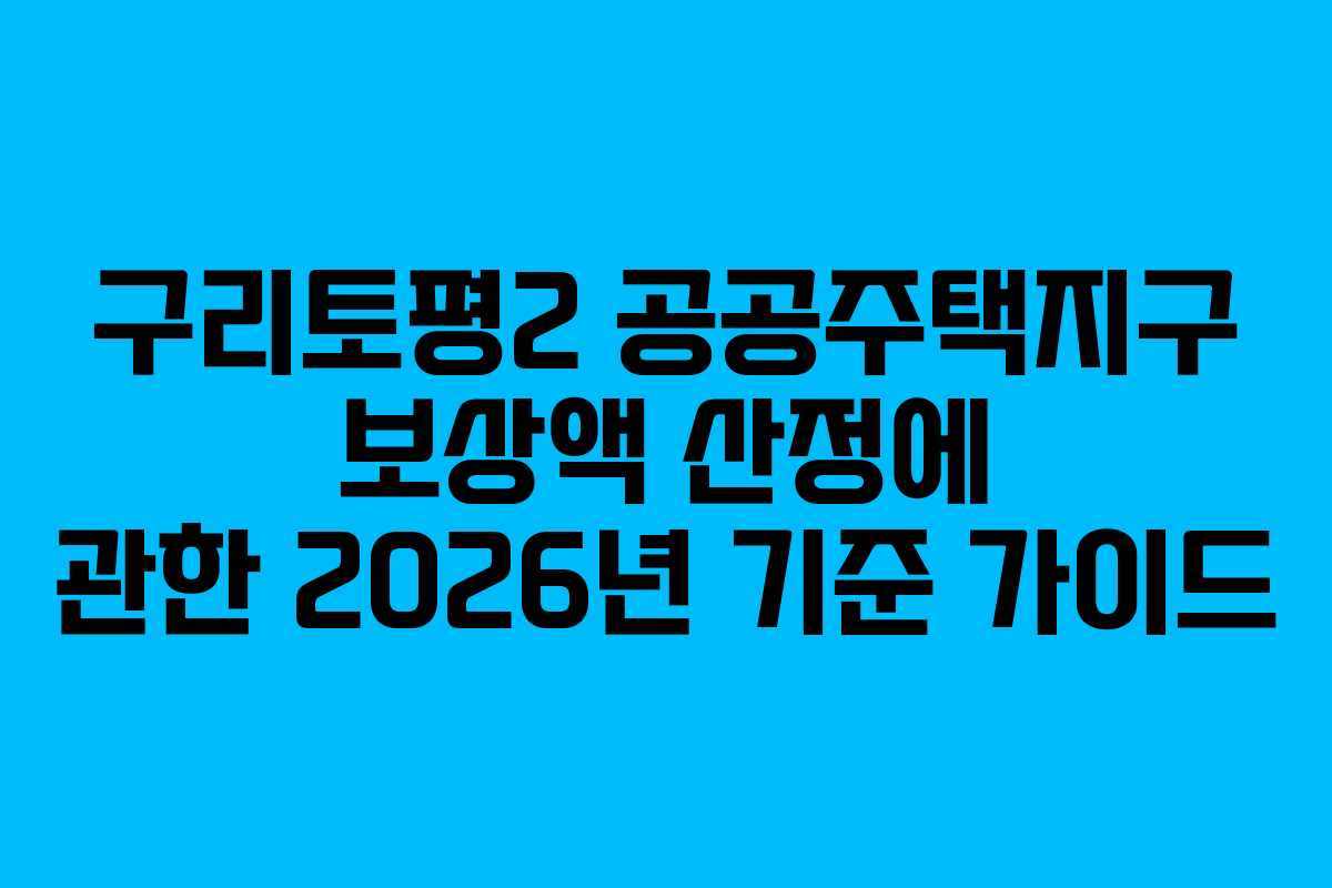 구리토평2 공공주택지구의 보상액 산정에 대해 알아보겠습니다. 이 글은 2026년 기준으로 보정된 정보와 함께 보상액 산정의 원칙과 예외사항을 안내합니다.