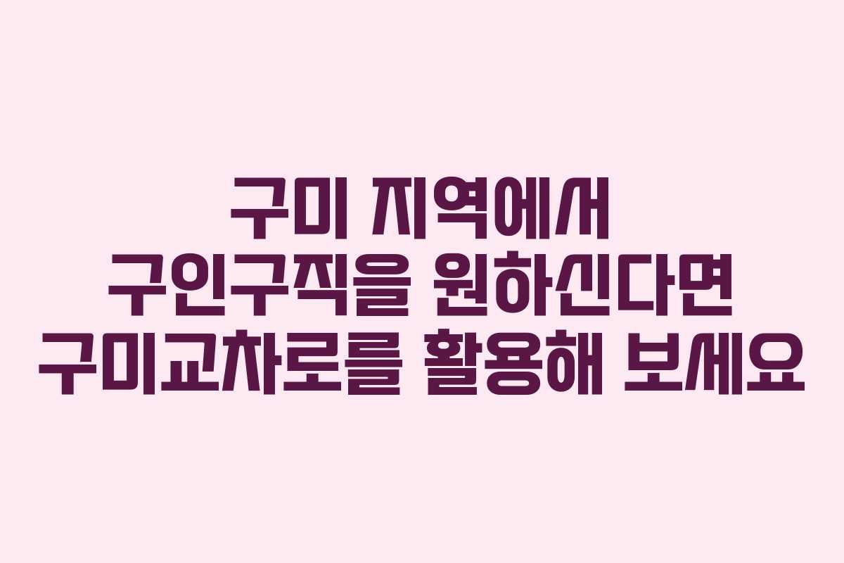 구미 지역에서 구인구직을 원하신다면 구미교차로를 활용해 보세요