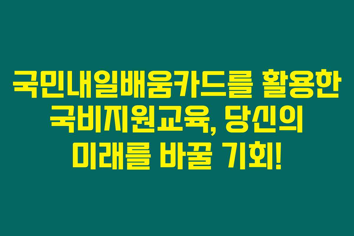 국민내일배움카드를 활용한 국비지원교육, 당신의 미래를 바꿀 기회!