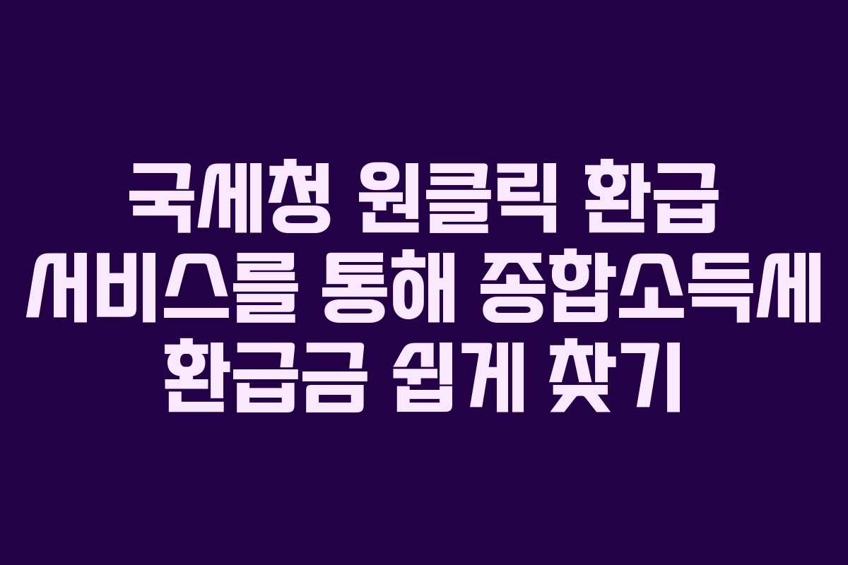 2026년에는 많은 사람들이 종합소득세 신고 후 환급금을 찾으려고 합니다. 국세청에서는 원클릭 환급 서비스를 제공하여, 사용자가 손쉽게 환급금을 조회하고 신청할 수 있도록 돕고 있습니다. 이 서비스를 통해 내 환급금을 간편하게 확인하고 받을 수 있는 방법을 알아보겠습니다.