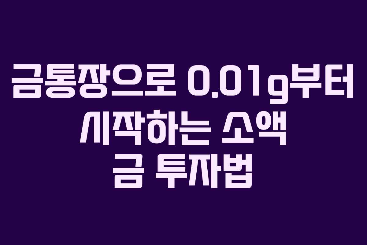 - 금통장이란? 소액 투자자를 위한 최적의 선택