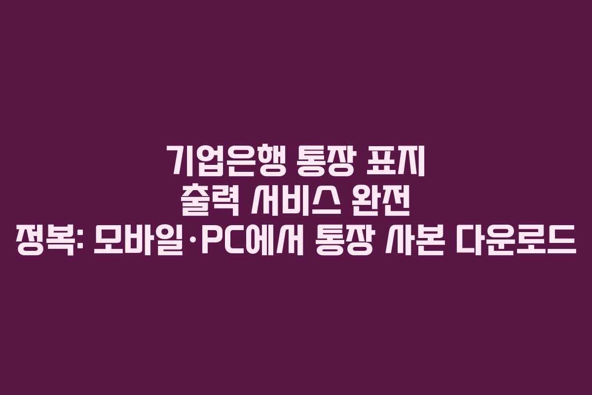 아래를 읽어보시면 모바일과 PC에서 기업은행의 통장 표지 출력 서비스를 통해 통장 사본을 간편하게 받아보는 방법을 확인할 수 있습니다.