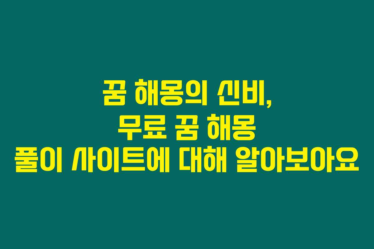 꿈 해몽의 신비, 무료 꿈 해몽 풀이 사이트에 대해 알아보아요