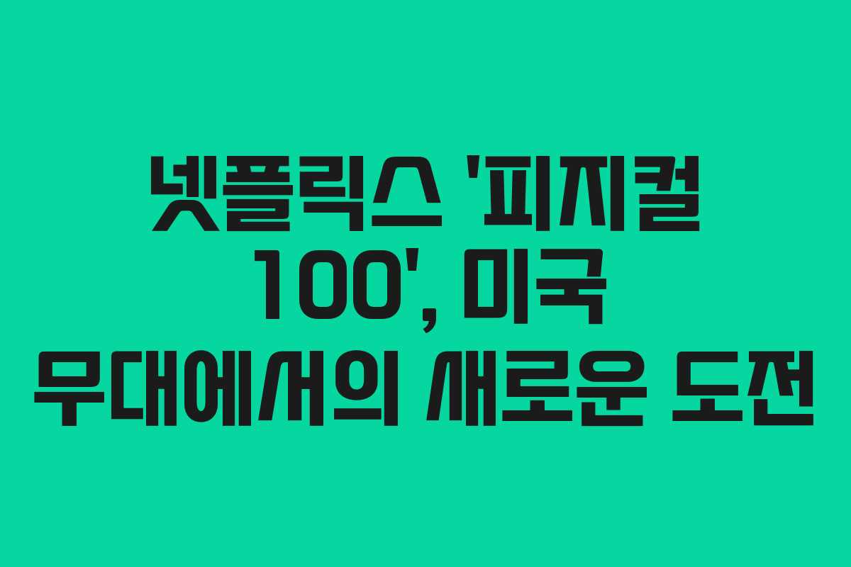 한국 예능의 대표적인 서바이벌 프로그램인 ‘피지컬: 100’이 미국에서 새로운 시작을 알립니다. 이 프로그램은 한국 콘텐츠의 글로벌 확장을 보여주는 중요한 사례로 부각되고 있습니다.