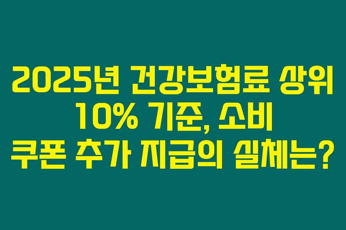 제가 직접 체크해본 바로는 2025년 건강보험료 상위 10% 기준이 많은 사람들에게 큰 관심을 받고 있습니다. 특히 추경 소비 쿠폰 지급 여부에 대한 이슈도 부각되면서 ‘상위 10%’라는 기준에 대한 이해가 더욱 필요해졌습니다. 아래를 읽어보시면 건강보험료 및 추가 지급과 관련된 중요 정보를 확인할 수 있을 거예요.