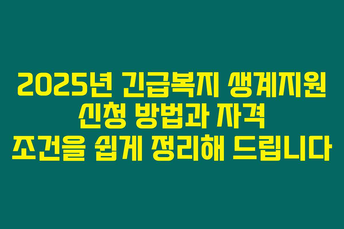 긴급복지 생계지원을 신청하기 위해서는 위기 사유와 소득, 재산 기준을 모두 충족해야 합니다. 2025년의 자격 조건을 살펴보겠습니다.