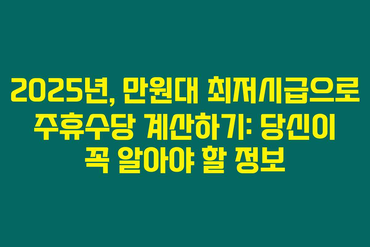 2025년, 만원대 최저시급으로 주휴수당 계산하기: 당신이 꼭 알아야 할 정보