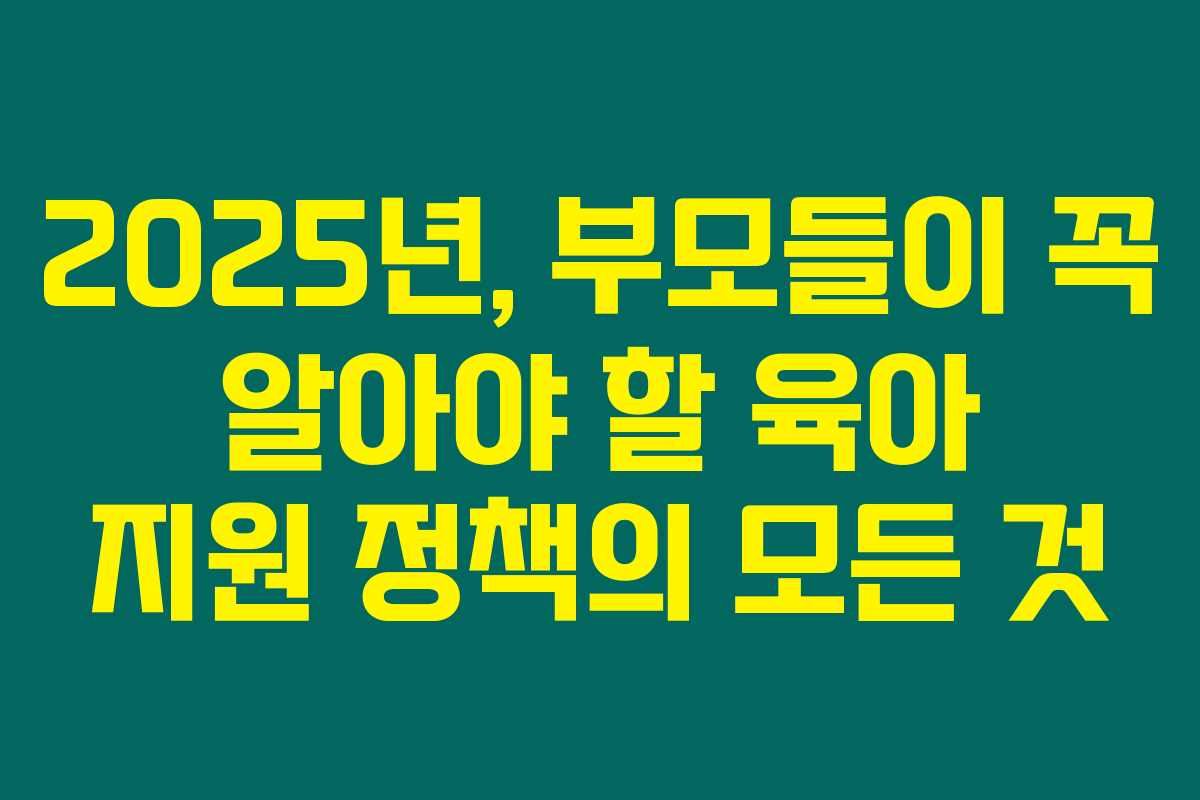 제가 알아본 바로는, 2025년부터 시행되는 육아 지원 정책들은 부모들의 육아 부담을 상당히 덜어줄 수 있는 다양한 혜택을 포함하고 있어요. 이러한 정책들은 실질적인 경제적 지원뿐만 아니라 아이들의 건강한 성장과 안정적인 양육 환경 조성을 위해 큰 역할을 하리라 생각되는데요. 아래를 읽어보시면 꼭 필요한 정보들을 확인할 수 있으니 주목해 주세요!