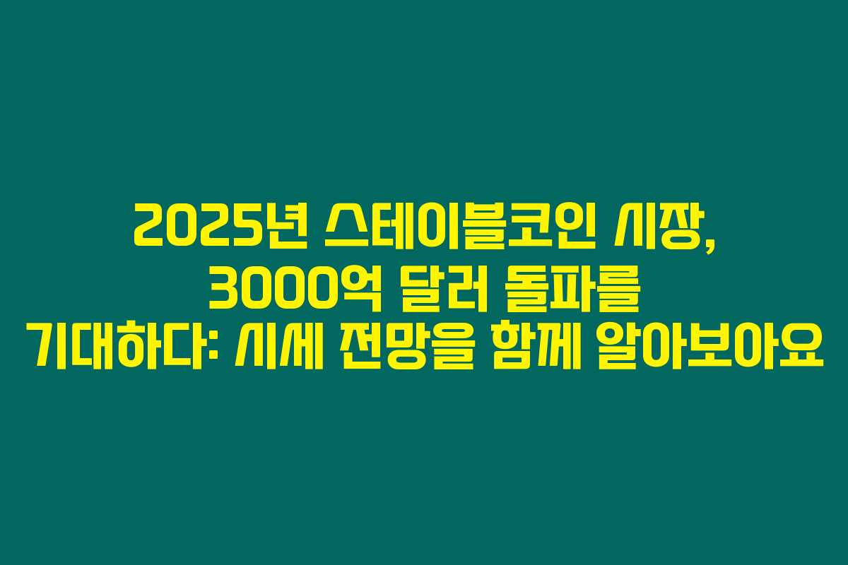 제가 직접 체크해본 바로는 스테이블코인의 성장이 눈에 띄게 가속화되고 있으며, 2025년에는 이 시장이 3000억 달러를 넘길 것으로 예상된답니다. 현재 스테이블코인은 전 세계 금융 시스템에서 중요한 역할을 맡고 있으며, 아래를 읽어보시면 그 이유와 전망을 함께 살펴볼 수 있어요.
