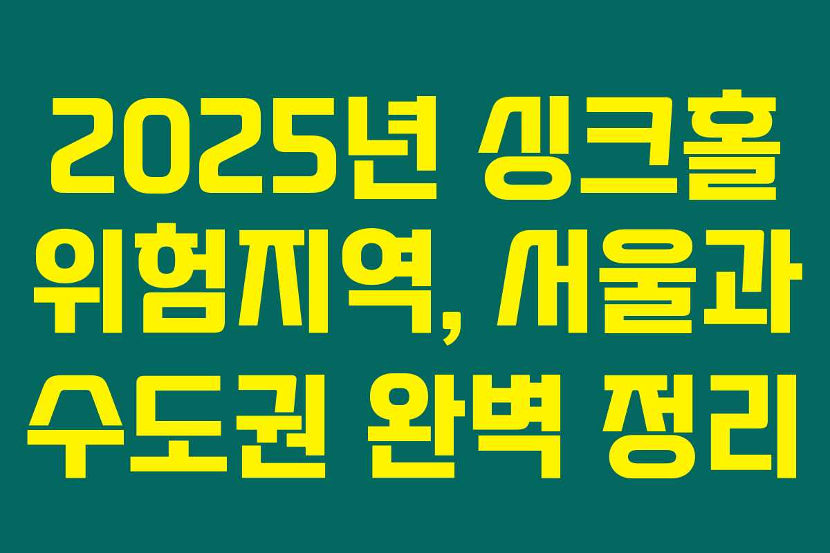 제가 직접 경험해본 결과로는, 최근 싱크홀 사고가 빈발하면서 많은 이들이 서울 및 수도권의 안전성을 걱정하고 있습니다. 특히 2025년으로 다가가면서 예상되는 싱크홀 발생지도와 위험지역을 정리해보려고 합니다. 아래를 읽어보시면, 각 지역의 안전에 대한 정보를 한눈에 확인할 수 있을 것입니다.