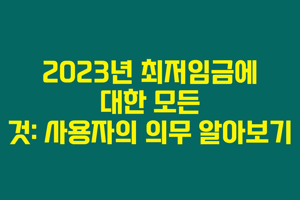 2023년 최저임금에 대해 제가 직접 체크해본 바로는, 최저임금의 변화는 사용자와 근로자 모두에게 중요한 영향을 미친다는 사실이에요. 특히 사용자로서 어떤 법적 의무가 있는지,그리고 이를 제대로 이행하지 않았을 경우의 리스크가 무엇인지에 대해 알아보도록 할게요.