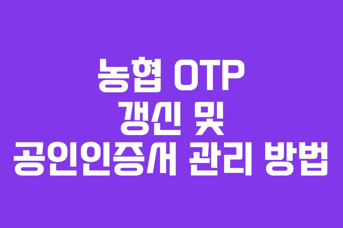 농협 OTP 갱신 및 공인인증서 관리 방법