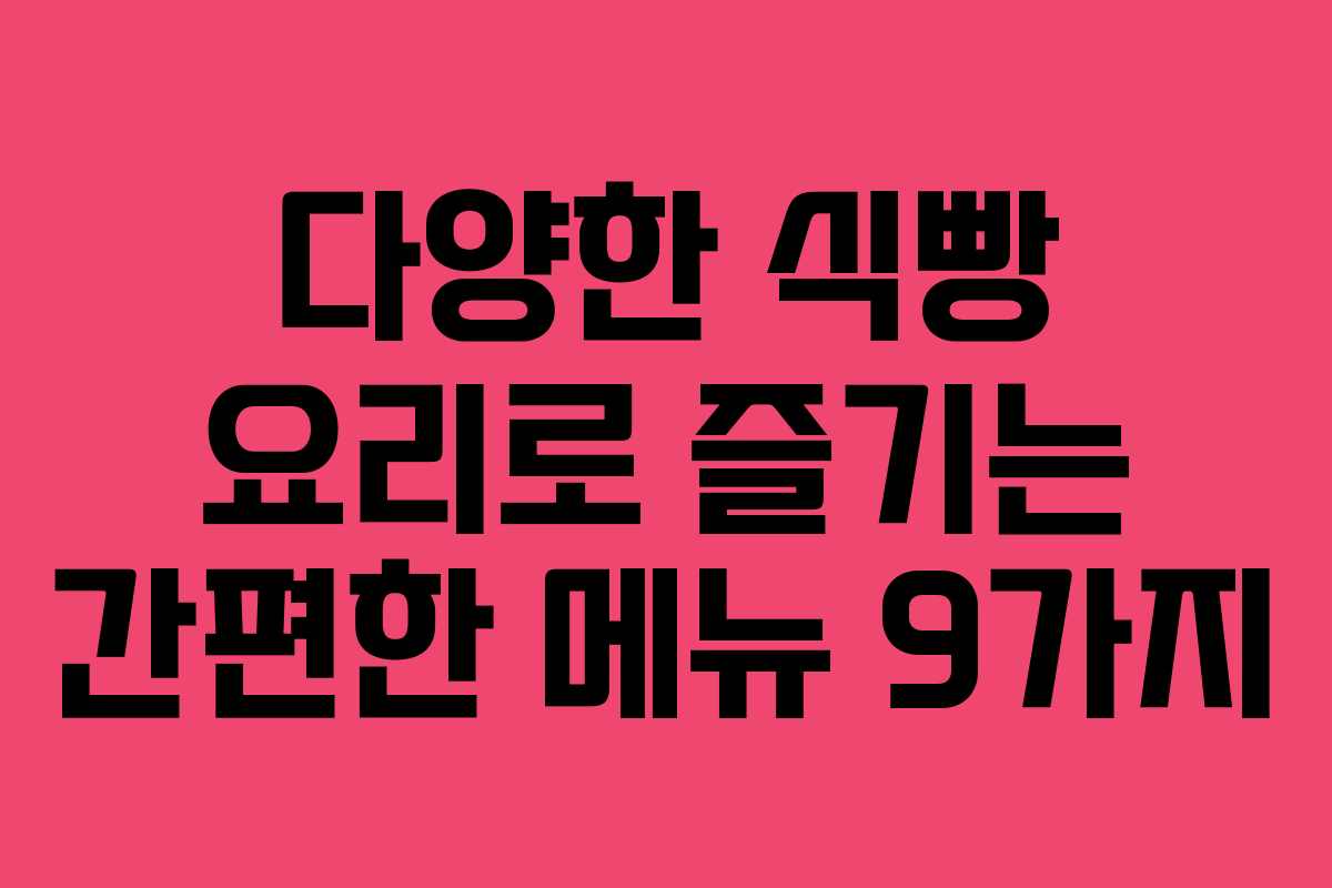 식빵은 다양한 재료와 조합하여 간편하지만 맛있는 요리를 만들 수 있는 훌륭한 재료입니다. 나들이, 브런치, 간식 등 다양한 상황에서 활용할 수 있는 식빵 요리로 즐거운 시간을 보내세요.