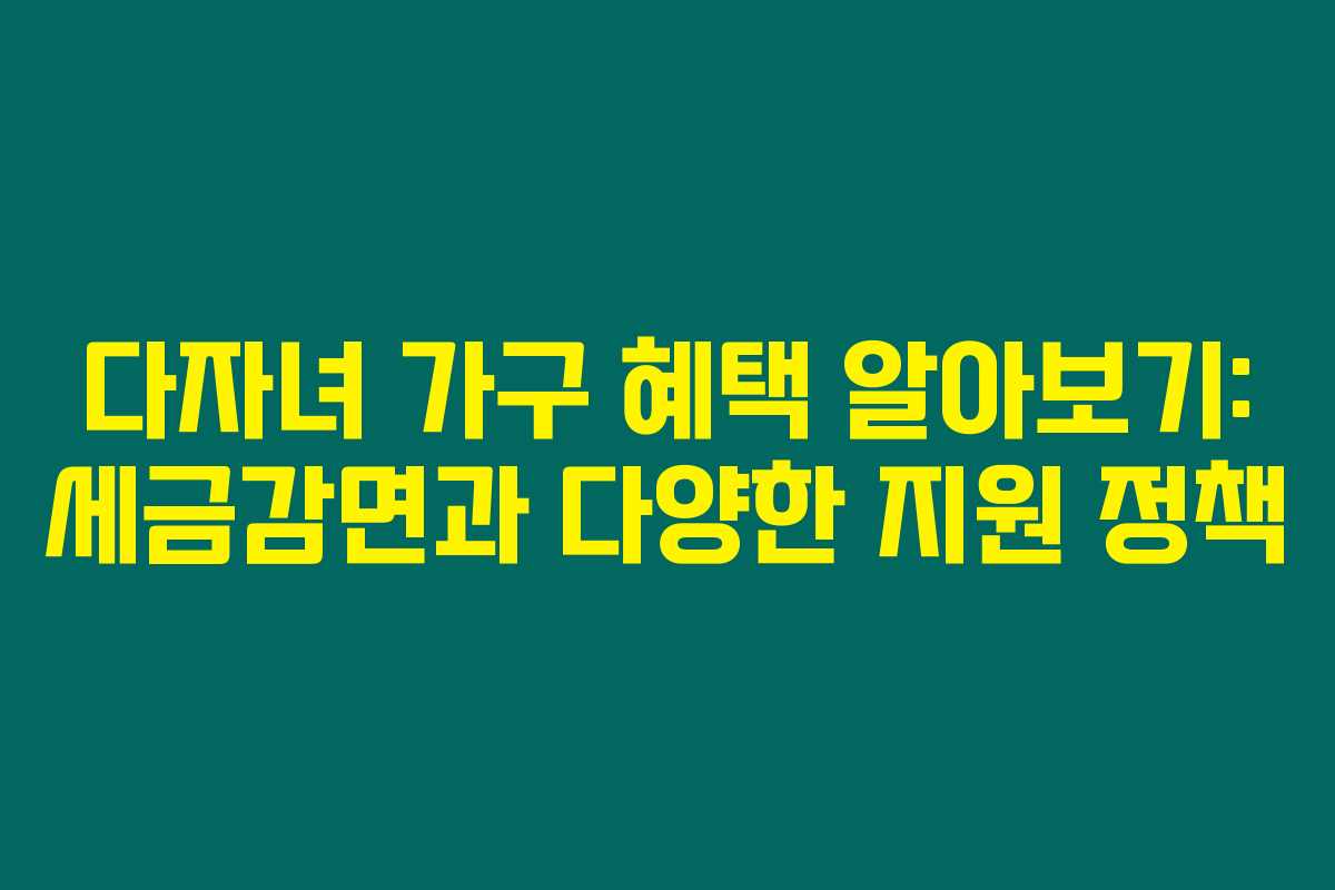 제가 직접 알아본 바로는, 2024년부터 다자녀 가구의 혜택이 더욱 확대되면서 지원을 받을 수 있는 가구가 증가할 것으로 전망됩니다. 특히, 다자녀 혜택의 기준이 3인 자녀에서 2인으로 완화됨에 따라 많은 가구에 실질적인 도움을 제공할 수 있게 되었어요. 이 글에서는 다자녀 가구 혜택 중에서 특히 주목해야 할 세금감면과 그 외 다양한 지원 정책에 대해 알아볼게요. 아래를 읽어보시면 각 혜택의 내용과 신청 방법에 대한 유용한 정보를 확인할 수 있습니다.