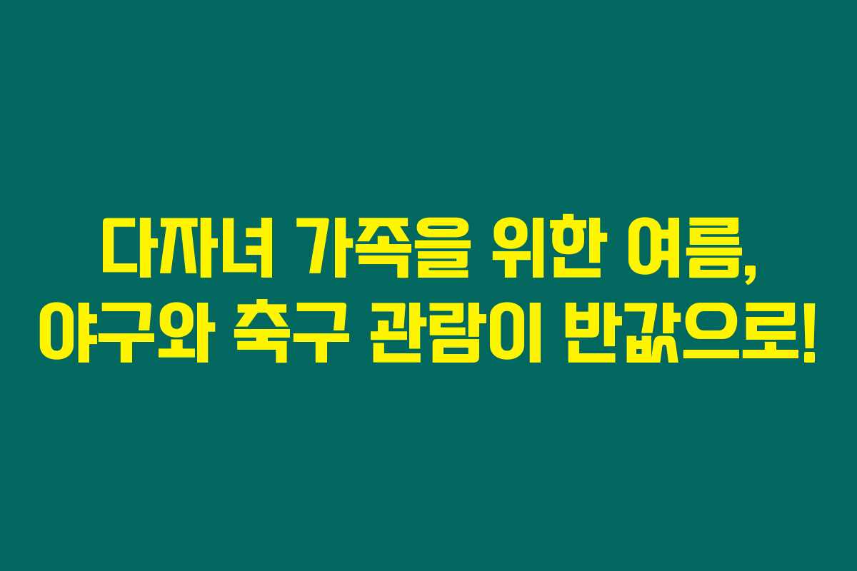 결론적으로, 이번 7~8월은 다자녀 가족에게 큰 혜택의 기회가 되는 것 같아요. 야구와 축구 관람료 할인을 통해 가족과 함께 즐거운 여름을 보내시길 바랍니다. 특별한 경험과 좋은 시간은 항상 소중한 법이니까요. 다들 즐거운 관람 되시길 바랄게요!