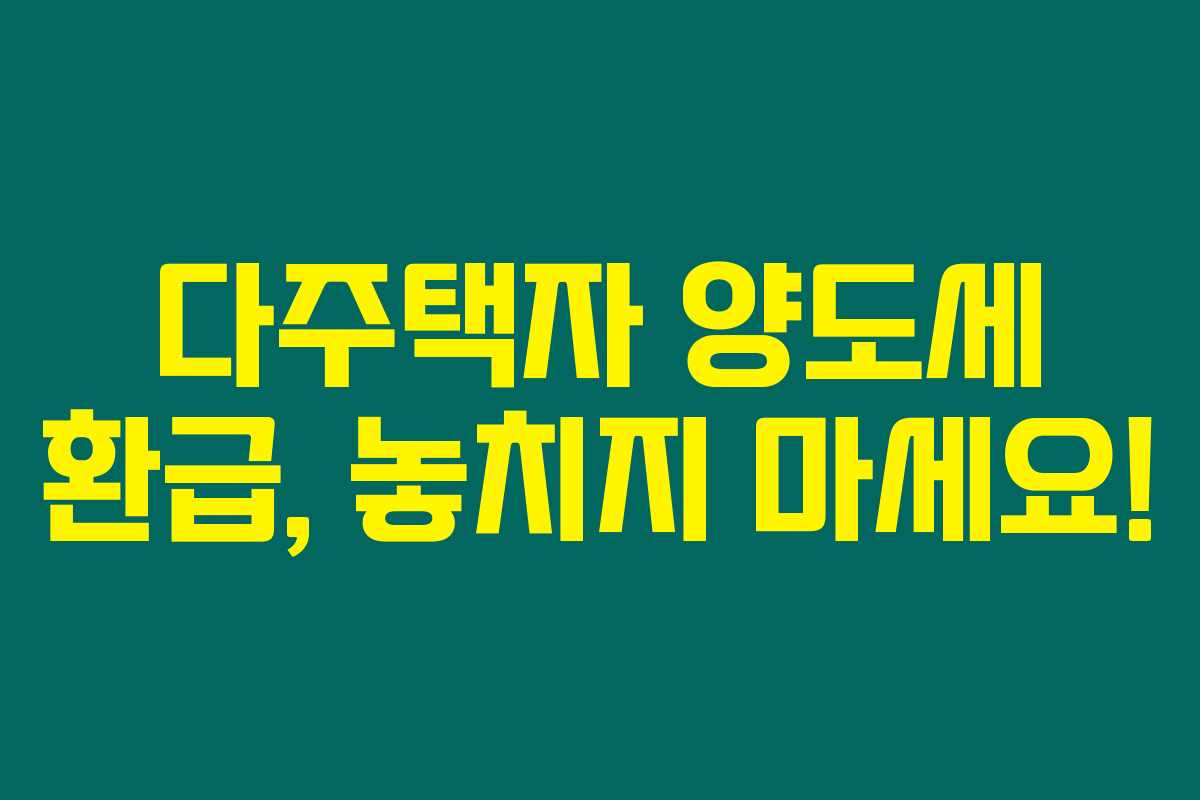 다주택자 양도세 환급 방법에 대해 저의 의견을 공유드리자면: