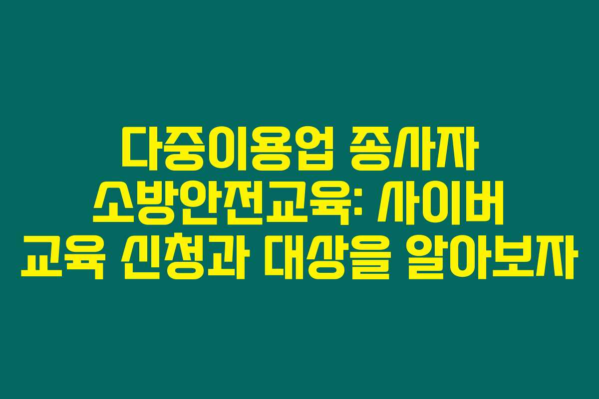 다중이용업 종사자와 운영자는 필수적으로 소방안전교육을 이수해야 합니다. 이에 따라 사이버 교육 신청 방법 및 대상에 대한 정보는 매우 중요합니다. 아래를 읽어보시면 다중이용업의 개념과 소방안전교육의 필요성, 그리고 사이버 교육의 방법과 절차에 대해 더욱 자세히 알 수 있습니다.