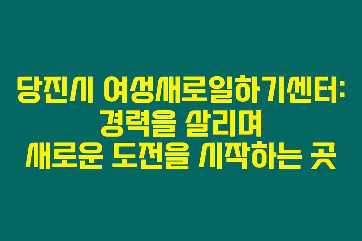 당진시의 일자리 정보는 언제나 중요하니, 귀하의 성공적인 취업을 바라며 여성새로일하기센터를 이용해 보세요!