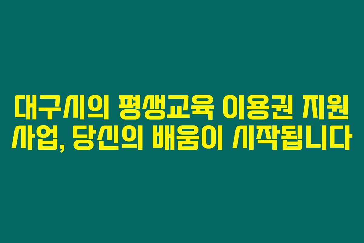 대구시의 2025년 평생교육이용권 지원 사업은 시민들이 평생교육에 참여할 수 있는 획기적인 기회랍니다. 이 사업을 통해 다양한 경험을 쌓고 자신을 발전시키는 기회를 놓치지 마세요!