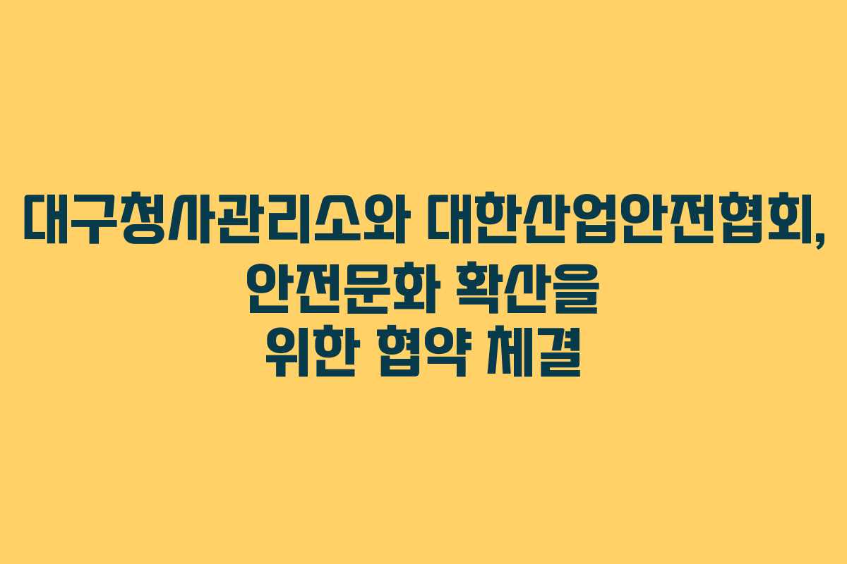 안전문화 확산은 근로자와 시민들의 안전을 보장하는 중요한 과정입니다. 이번 협약을 통해 대구시는 안전한 근로환경을 조성하고, 산업재해 예방에 대한 인식을 높일 수 있을 것입니다.