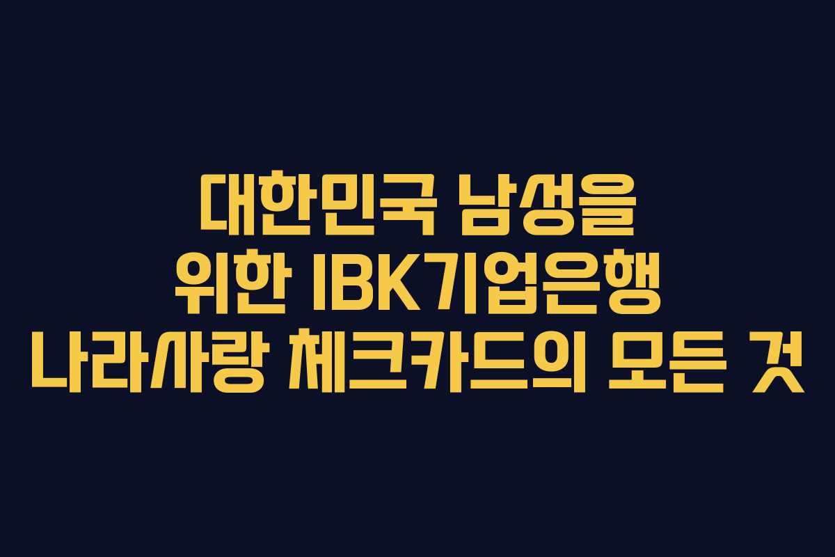 IBK기업은행의 나라사랑 체크카드는 대한민국 남성들만을 대상으로 한 특별한 혜택을 제공하는 카드입니다. 이 카드는 국방의 의무를 다하는 분들에게 유용한 혜택을 제공하며, 군복무 중에도 다양한 금융 서비스를 활용할 수 있도록 돕습니다.