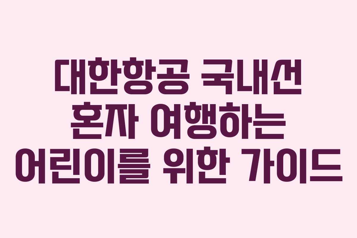 대한항공 국내선 혼자 여행하는 어린이를 위한 가이드