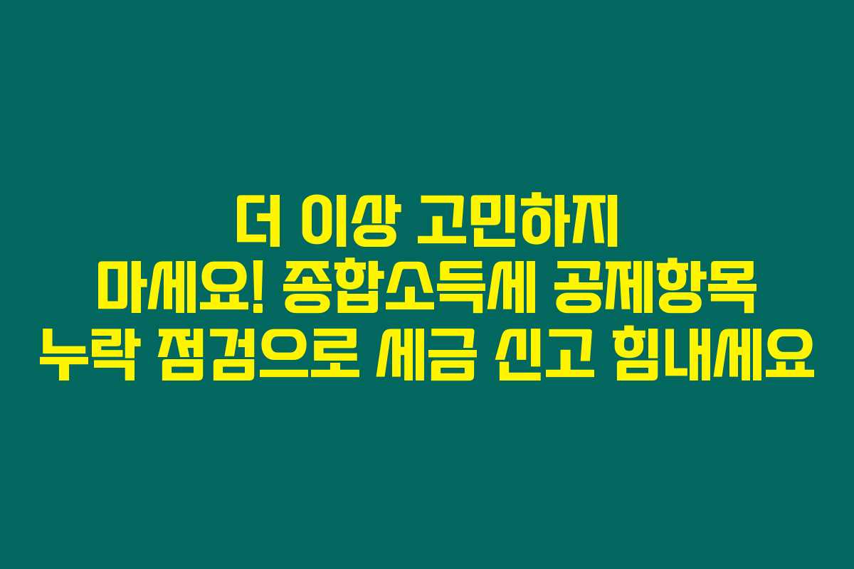 제가 직접 경험해본 결과, 많은 사람들이 종합소득세 공제항목 누락으로 애를 먹는 경우가 많습니다. 다양한 공제항목이 있다 보니, 누락이 발생하기 쉽거든요. 세금을 정확하게 신고하는 방법에 대해 알아보겠습니다.