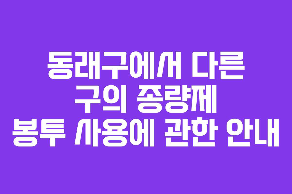 2026년을 기준으로, 동래구에서 사용 가능한 종량제 봉투에 대해 아래와 같은 정보를 제공합니다. 동래구 주민들은 인근 구의 종량제 봉투를 사용할 수 있으며, 이와 관련해 스티커를 부착할 필요가 없습니다. 실제로, 금정구에서 발급된 봉투도 사용 가능하다는 점은 많은 주민들에게 기쁜 소식입니다.