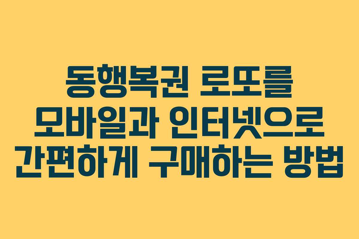 2025년 2월 7일 기준으로, 동행복권에서는 로또를 모바일과 인터넷을 통해 손쉽게 구매할 수 있는 방법을 제공하고 있습니다. 이러한 방식은 빠르고 간편하게 로또를 구매하고, 각종 이벤트와 보너스 혜택을 누릴 수 있는 기회를 제공합니다. 이제 복잡한 절차 없이 누구나 쉽게 로또를 구매할 수 있는 시대가 열렸습니다.
