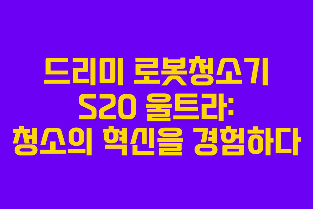 드리미 로봇청소기 S20 울트라: 청소의 혁신을 경험하다