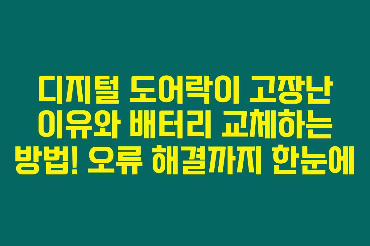 제가 직접 체크해본 바로는 디지털 도어락은 현대 생활에서 매우 편리하지만, 때때로 고장이 나거나 문제가 발생할 수 있습니다. 특히 배터리 부족과 같은 간단한 원인으로 작동이 멈출 때는 당혹스럽기만 하지요. 아래를 읽어보시면 디지털 도어락의 고장 원인과 배터리 교체 방법, 오류 해결 팁을 쉽게 정리해드릴게요!