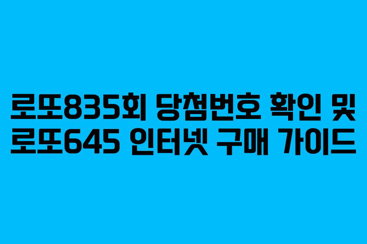 로또835회의 당첨번호와 함께 로또645의 인터넷 구매 방법에 대한 정보를 알아보자. 복권을 구입하는 방식이 변화하고 있으며, 이제는 동행복권을 통해 편리하게 구매할 수 있다. 로또를 구입하기 위해 복잡한 절차를 거치지 않고도 간편하게 접근할 수 있는 방법을 살펴보자.