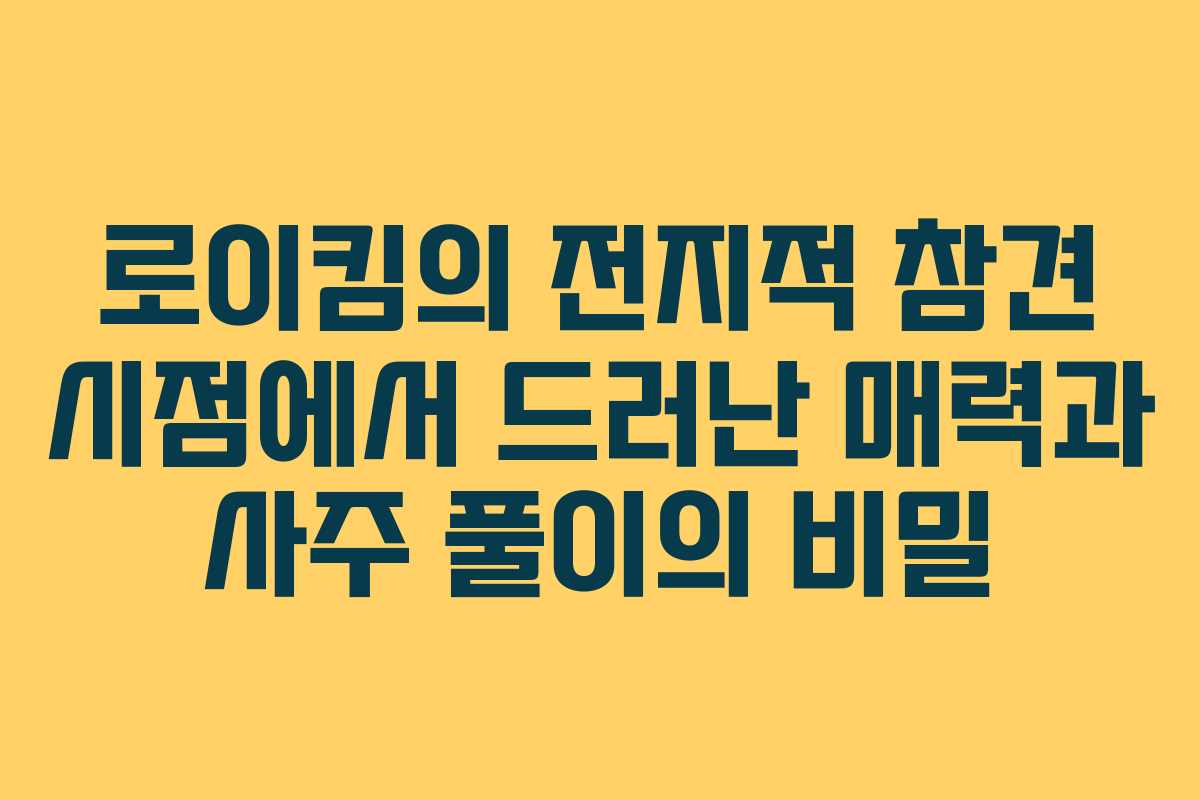 단순한 비즈니스 파트너를 넘어, 그들은 운명적인 시너지를 내는 관계로 평가받고 있다. 이는 그들의 긴밀한 협력과 상호 이해가 어떻게 그들의 성공을 이끌어내는지를 잘 보여주는 사례가 된다. 로이킴과 이한욱의 관계는 그들의 앞으로의 행보에 긍정적인 영향을 미칠 것으로 기대된다.