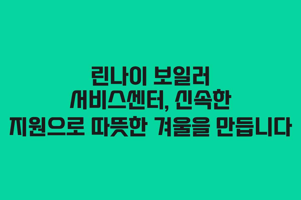린나이 보일러 서비스센터, 신속한 지원으로 따뜻한 겨울을 만듭니다