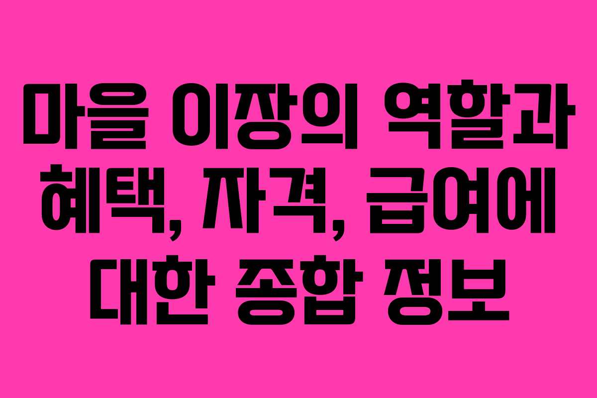 마을 이장의 역할과 혜택, 자격, 급여에 대한 종합 정보