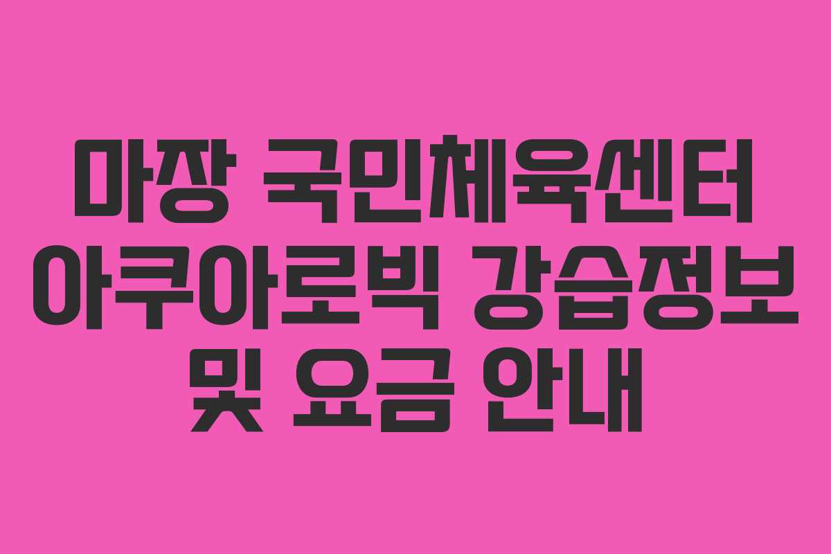 2026년 기준으로 마장 국민체육센터의 아쿠아로빅 강습은 정기적으로 운영되고 있으며, 주 2~3회 진행됩니다. 각 수업은 일반적으로 60분가량 소요되며, 세부적인 요금과 시간은 센터에 직접 문의하여 확인하는 것이 가장 정확합니다.